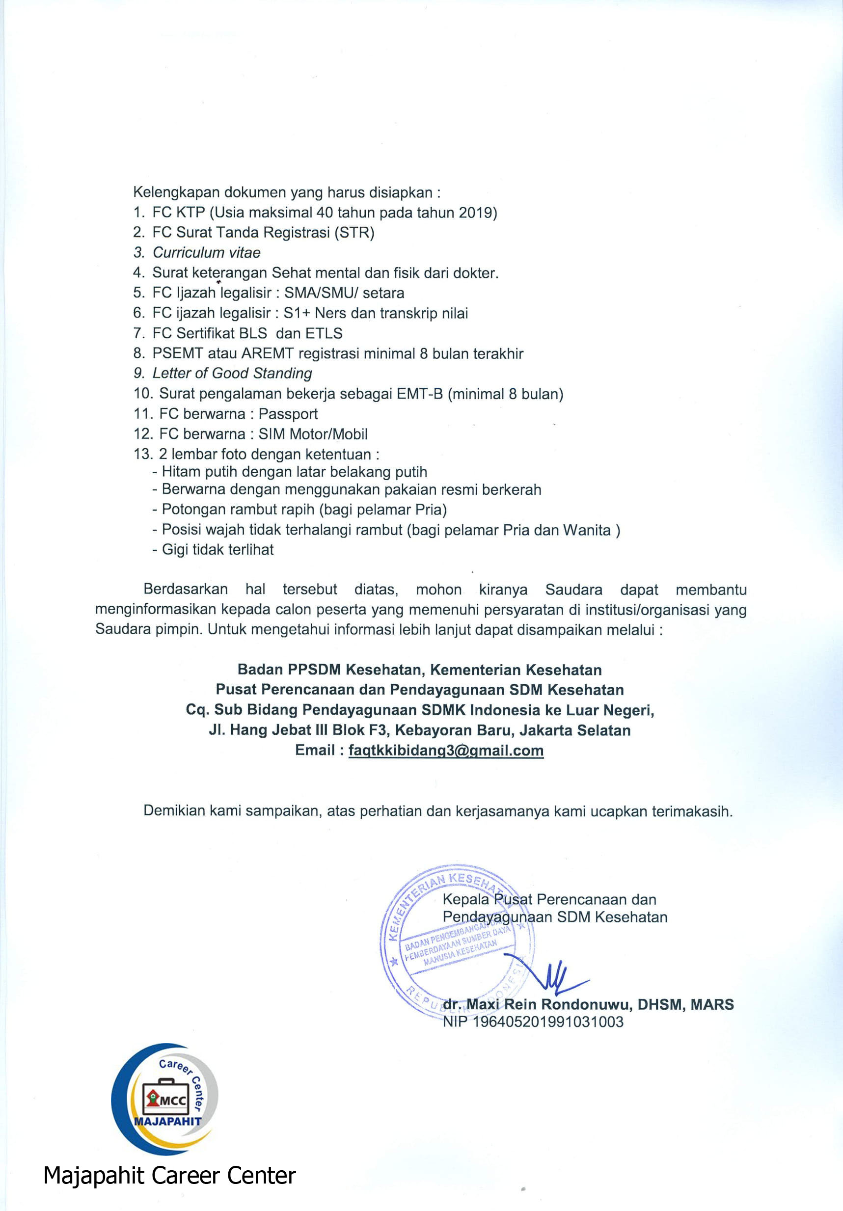 Peluang kerja perawat Indonesia Rabu, 27 Maret 2019 Administrator 0 komentar Bagikan artikel ini: Beri Komentar Nama Lengkap * Email * URL Komentar * Kirim Artikel Terkait Lowongan Kerja RS Mutiara Hati Mojokerto Selasa, 18 Juni 2019 Lowongan Kerja RS Mutiara Hati Mojokerto Selasa, 18 Juni 2019 Lowongan Kerja RS Sakinah Jum'at, 26 April 2019 Rekrutmen Tenaga Kesehatan Nusantara Sehat Individual Kamis, 14 Maret 2019 Rekrutmen Tenaga Kesehatan Nusantara Sehat Team Based Kamis, 14 Maret 2019 Lowongan Kerja RSI Sakinah Mojokerto Kamis, 14 Maret 2019 Lowongan Kerja Perawat Profesional Jum'at, 08 Maret 2019 Lowongan Kerja RS Bhayangkara Pusdik Sabhara Rabu, 13 Februari 2019 Lowongan Kerja PT Toddie Media Global Rabu, 30 Januari 2019 Peluang Karir di Jepang Rabu, 30 Januari 2019